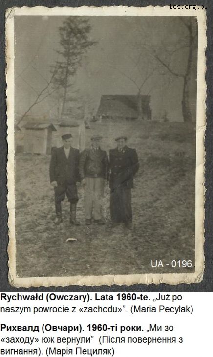 Якось через 2-4 роки прийшло повідомлення, що треба платити за ту господарку. Тато каже, що вони такі-сякі, привезли нас сюди, а тепер ще вимагають, щоб ми платили за ті каменюкі (бо то хата була кам’яна і була погана, не було стодоли, ми там напрацювалися, щоб пристосувати це місце для життя). Тоді тато з мамою поїхали до Любачева по документи про те, що вони там (на Закерзонні) господарку залишили. Це було небезпечно, бо в той час тих, які поверталися на свої землі могли в тюрму забрати.